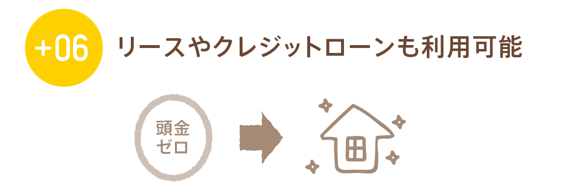 安定した賃貸経営のためには、手元資金を温存しキャッシュフローを上昇させることも重要 です。当社提携のリース会社やクレジット会社、銀行などの金融機関を活用して頂くことが可 能です。ローンを組むことで頭金ゼロからのリノベーションも可能ですので、お気軽にご相談 ください。