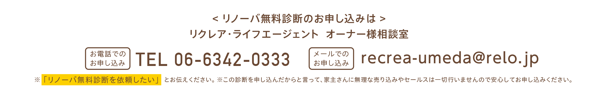 まずは下記フォームもしくはお電話にてリノーバ無料診断をご利用ください。